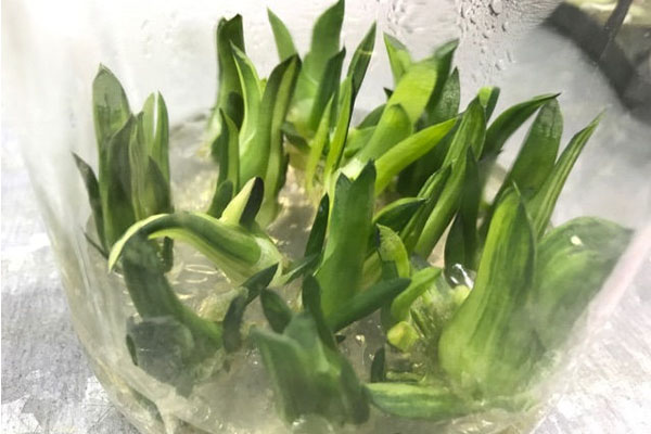 首先要配制好多種培養(yǎng)基,主要有用來形成原球莖的培養(yǎng)基;從原球莖分化芽和根的培養(yǎng)基;適合幼苗快速生長的培養(yǎng)基。然后,把分離切割好的細(xì)小培養(yǎng)物接種在利于形成原球莖的培養(yǎng)基上。