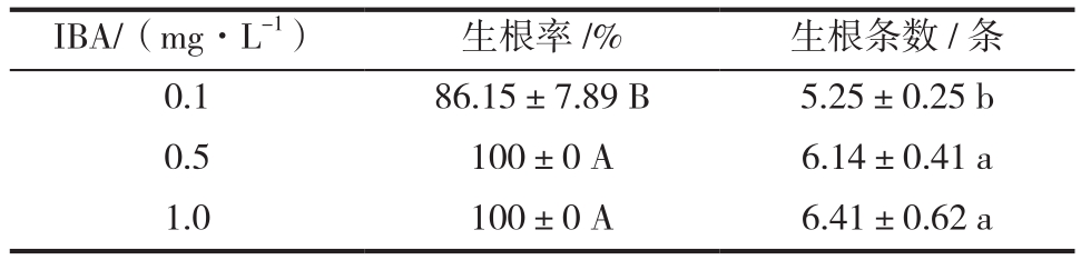 表3 IBA濃度對樹莓“Polana”生根的影響