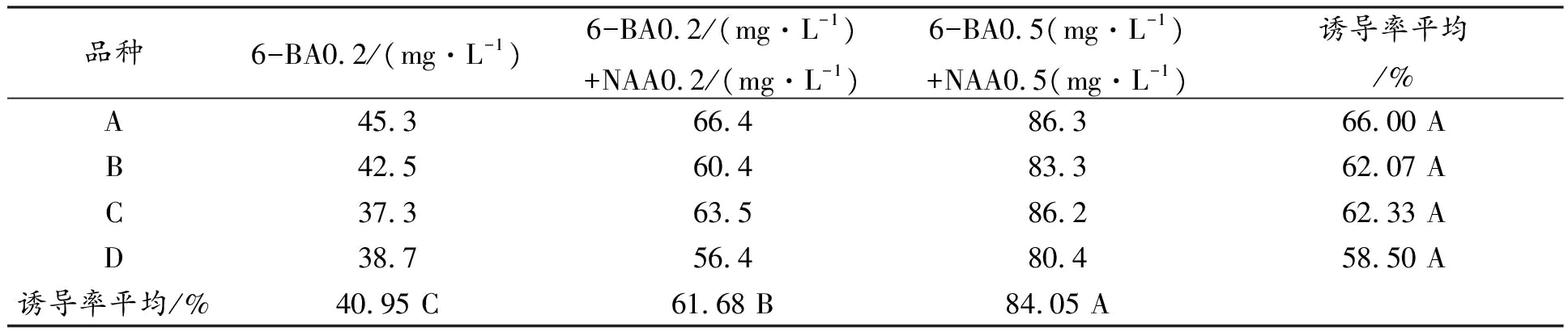 表1 不同激素配方對四種礬根初代培養(yǎng)誘導(dǎo)率的影響
