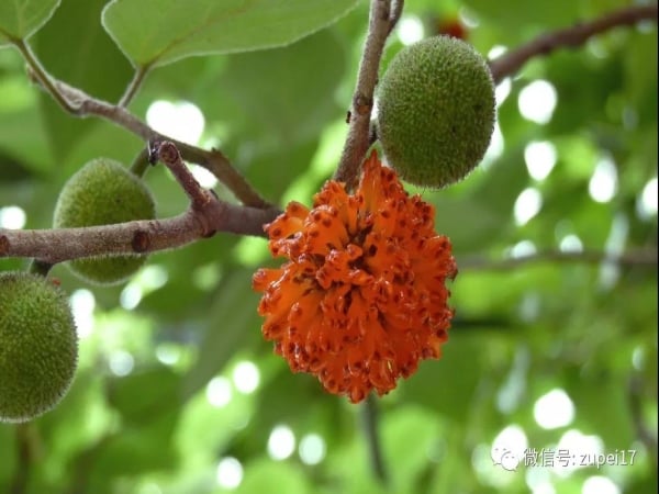 聚花果直徑1.5-3cm,成熟時(shí)橙紅色,肉質(zhì);瘦果具有等長(zhǎng)的柄,表面有小瘤,龍骨雙層,外果皮殼質(zhì)。花期4-5月,果期6-7月。